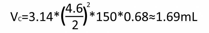 例如一根4.6mm内径,150 mm柱长的色谱柱柱体积为: