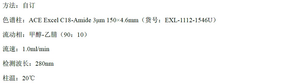 对于脂溶性维生素,除了TitanK C18,我们还有ACE C18-amide的应用,其中比较难分离维生素D2和D3的分离度非常不错: