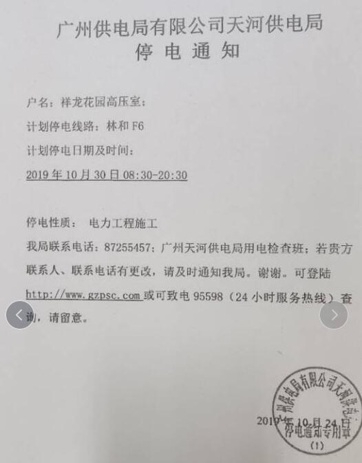 停电时间:2019年10月30日早08:30--下午20:30(本周三)
