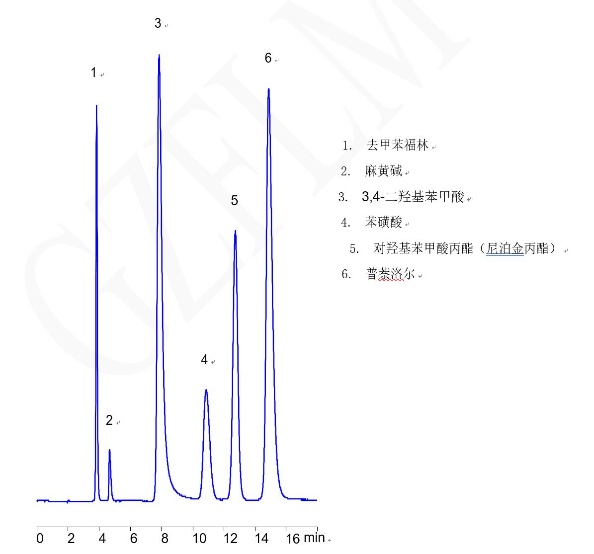 流动相:(乙腈:水:50mM 乙酸铵 pH 5) =(30:10:60)