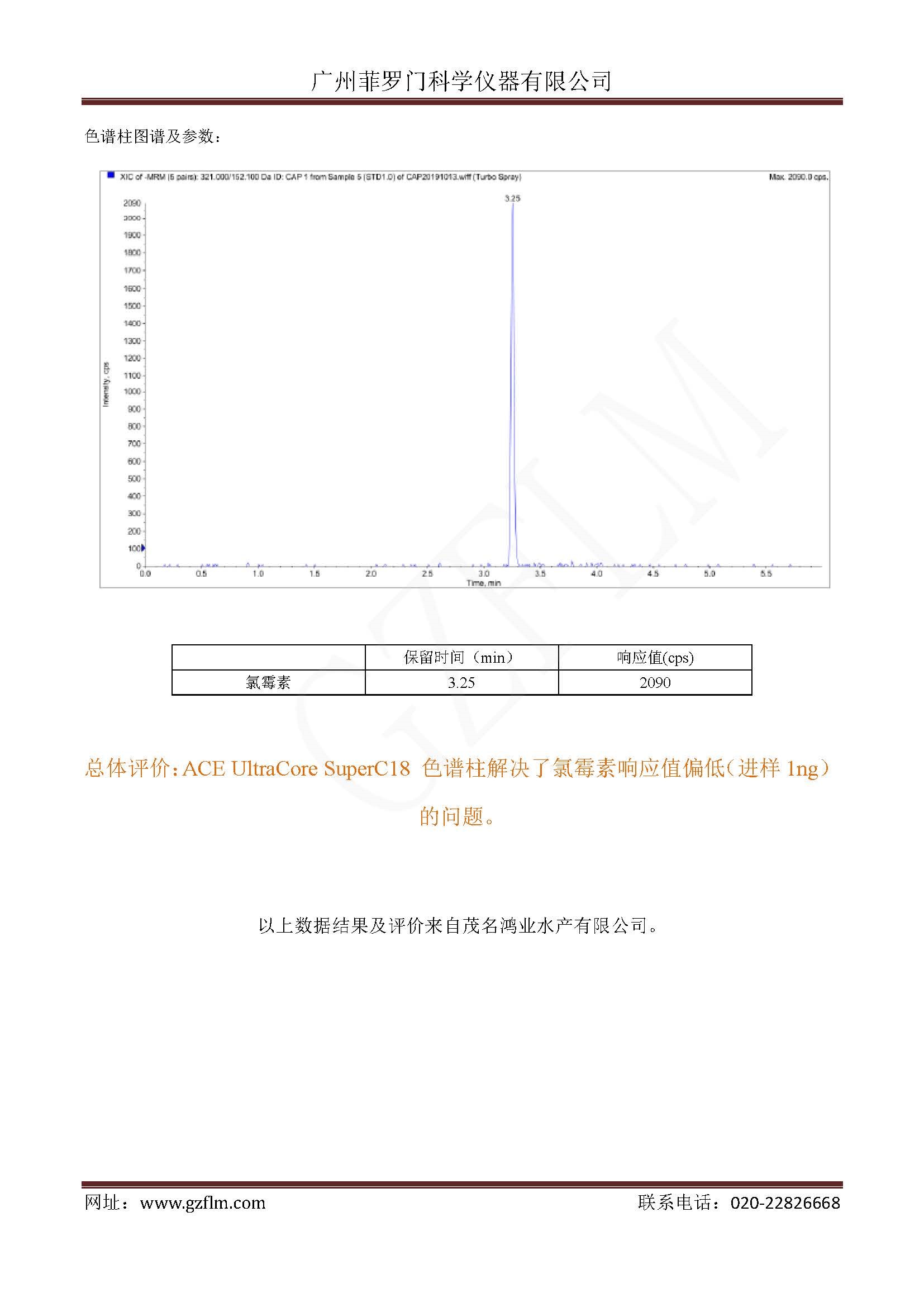 以上由ACE UltraCore Super C18 2.5u 50 X 3.0mm (货号:CORE-25A-0503U)一根柱子在质谱上解决硝基呋喃类、氯霉素类、磺胺类、沙星类、孔雀石绿和结晶紫水产品中的药物残留。