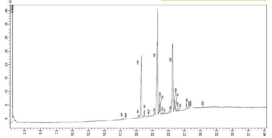 样品:30 毫克棕榈油溶解于 4 毫升异辛烷