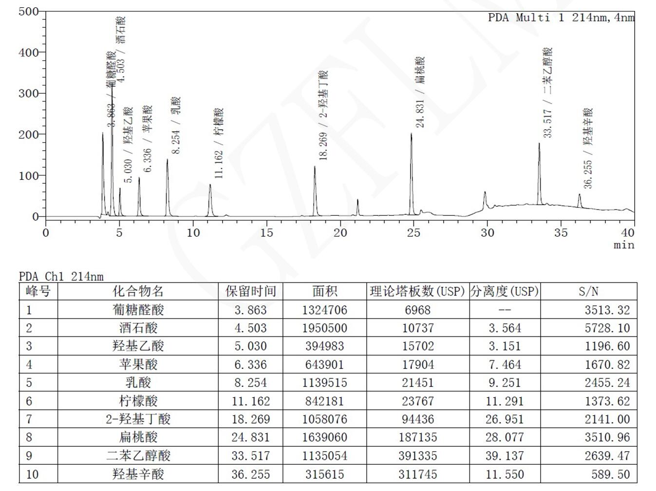 菲罗门对《化妆品安全技术规范》中 10 种α-羟基酸的检测