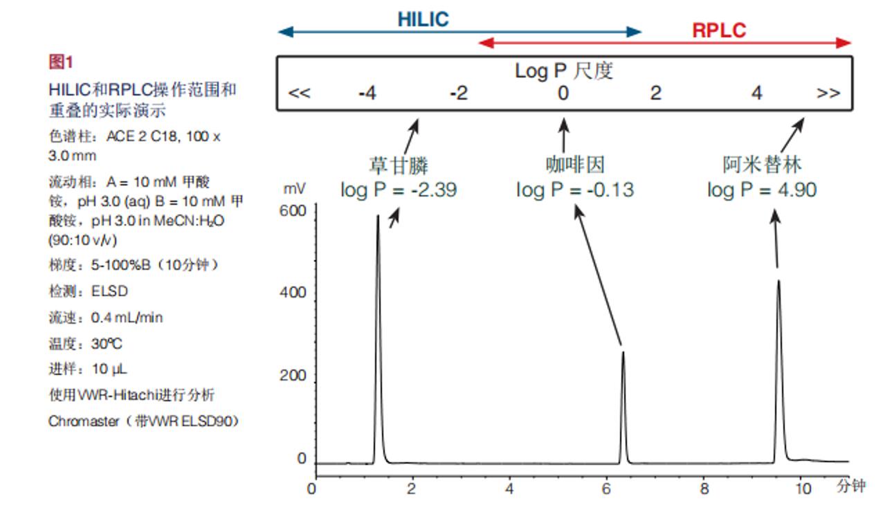 HILIC为亲水大极性分析(LogP为负值)物提供了 RPLC的替代选择,无需使用离子对试剂即可实现保留分离。