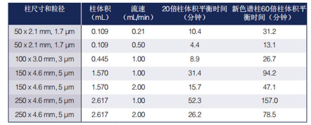 ACE 100 ?多孔柱达到20和60倍柱体积平衡所需的时间表