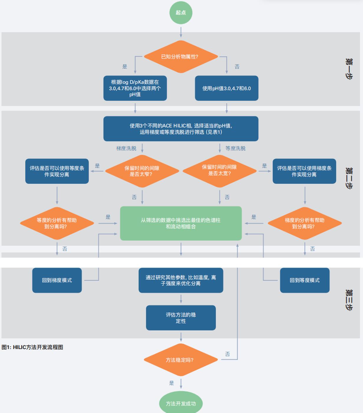 A:结合大极性分析物和Hliic色谱柱的特点,我们建立了一套可行的方法开发流程,可供大家参考。