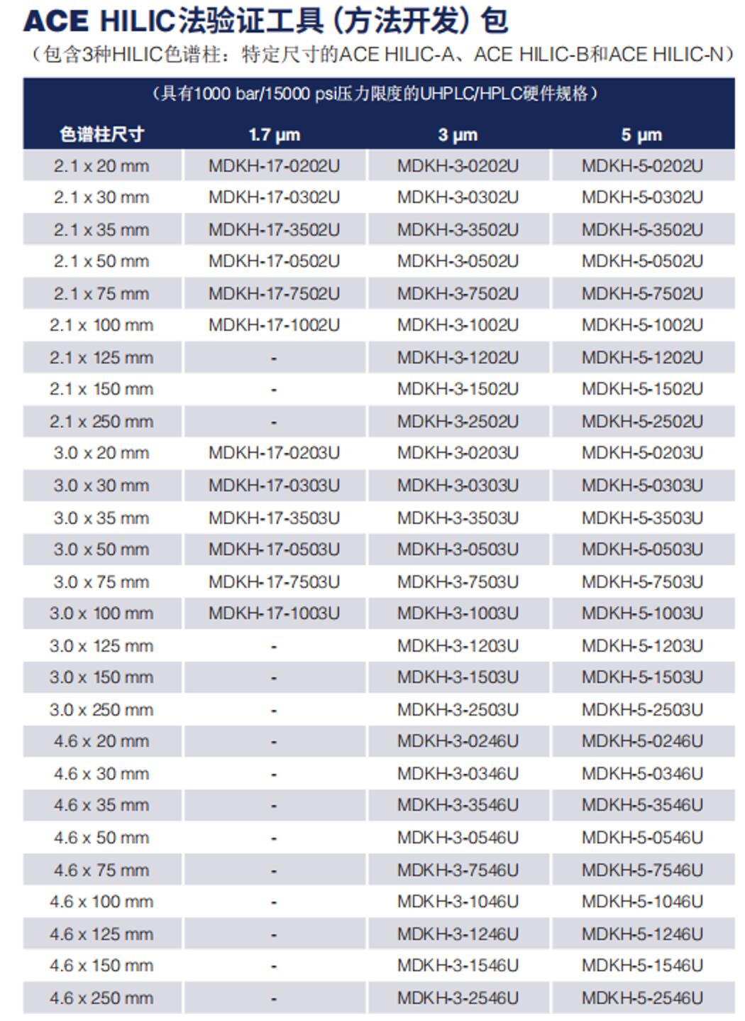 可选择中性或者酸性、碱性都可以。ACE提供市面常见的酸性(Hilic-A)、碱性(Hilic-B)、中性(Hilic-A)三种固定相Hilic色谱柱方法开发包,可作为分析工作者的首选工具。