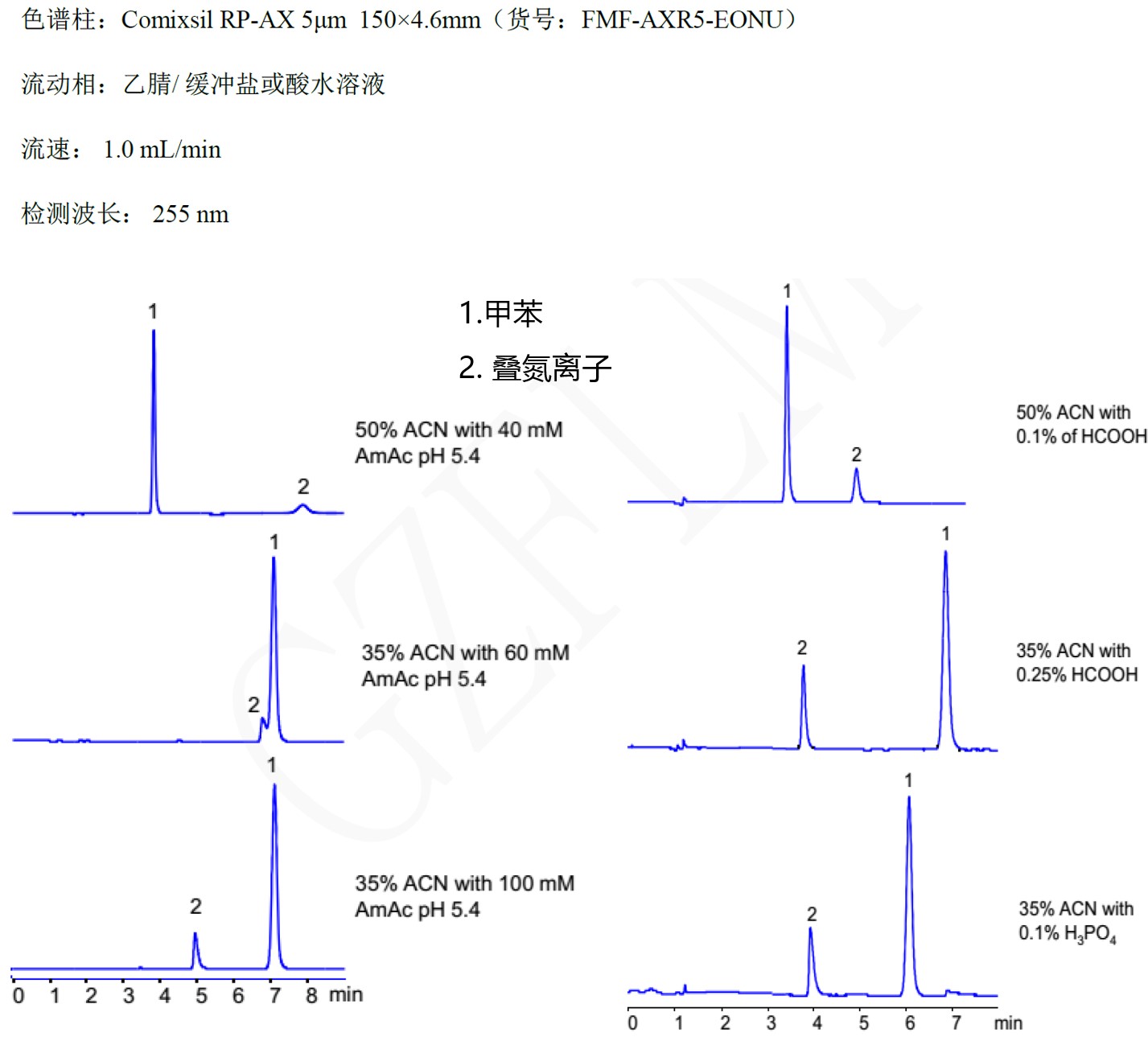 2. Comixsil RP-AX同时保留大极性叠氮离子和疏水小极性甲苯: