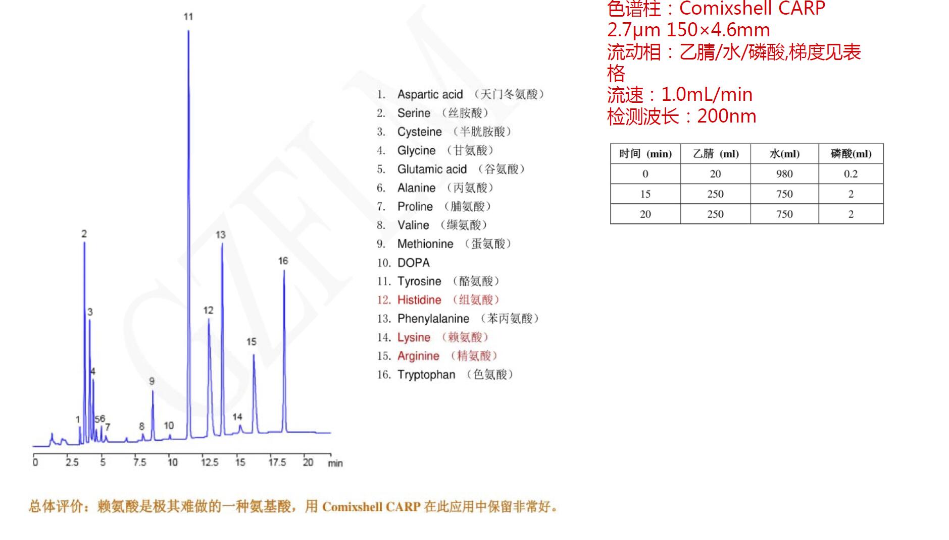 Comixsil CARP智能柱对16种非衍生氨基酸的分析-UV