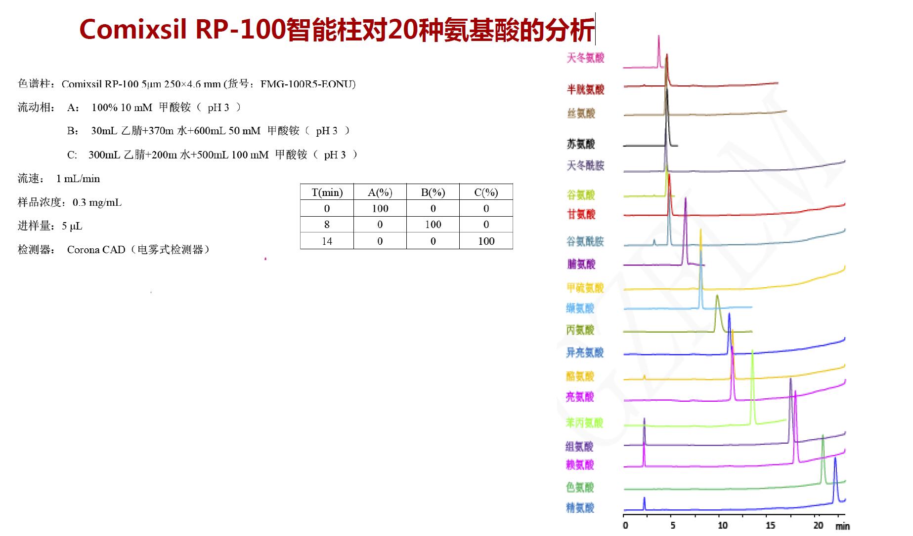 Comixsil RP-100智能柱对20种氨基酸的分析