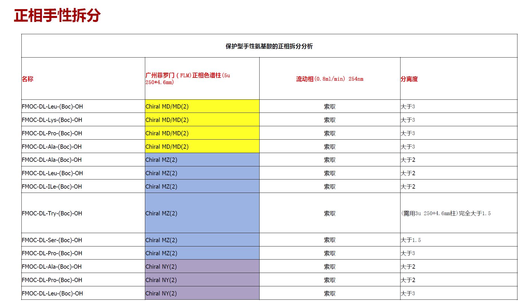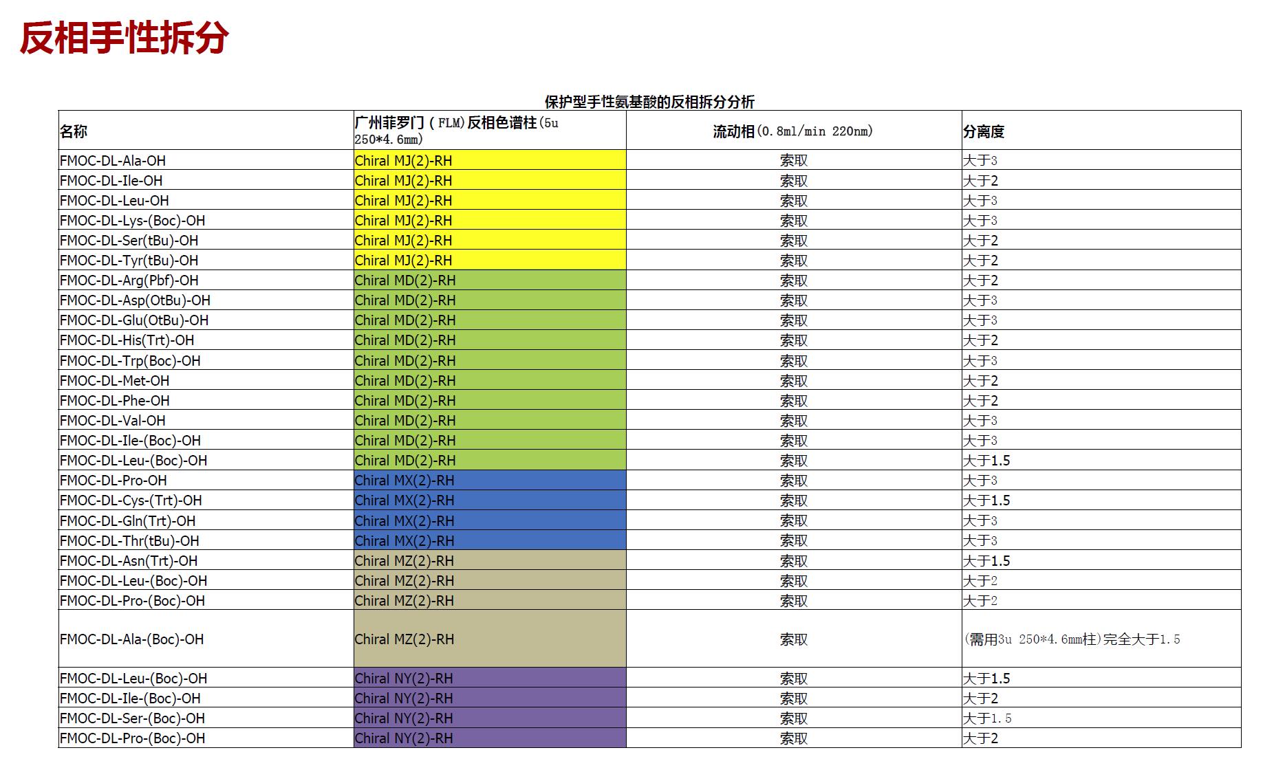 (1)、阿尔法(ɑ)型游离手性氨基酸拆分推荐用柱: