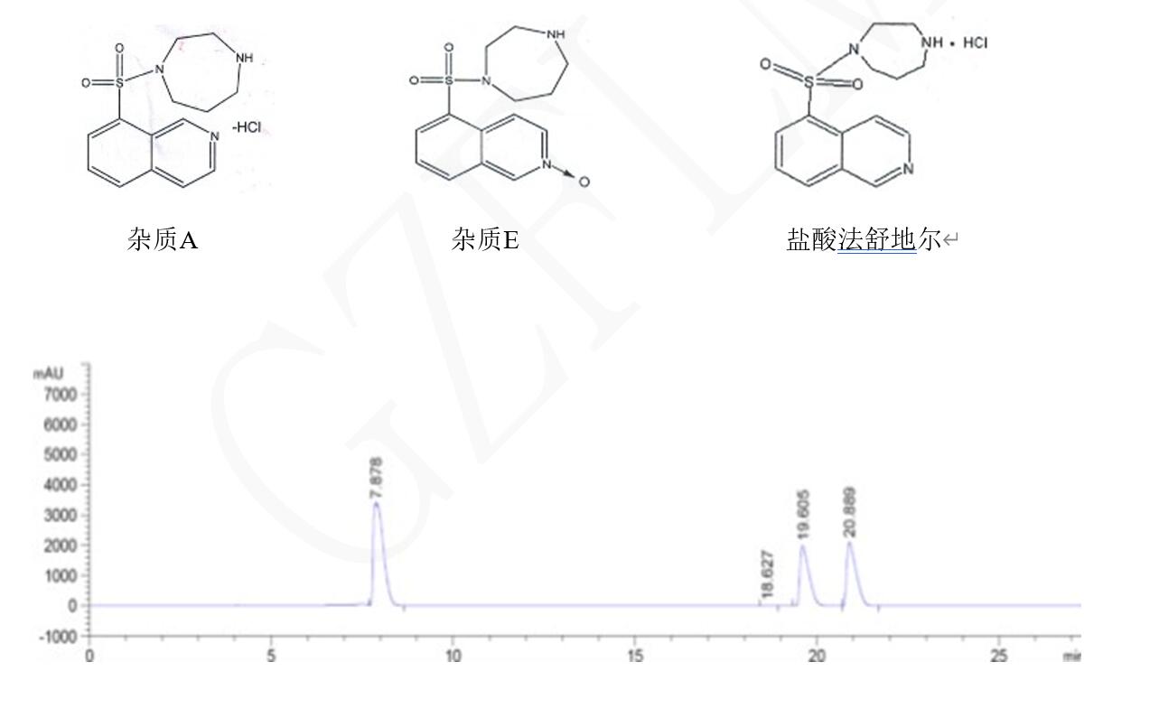 液相色谱柱盐酸法舒地尔与杂质A、E的色谱分离