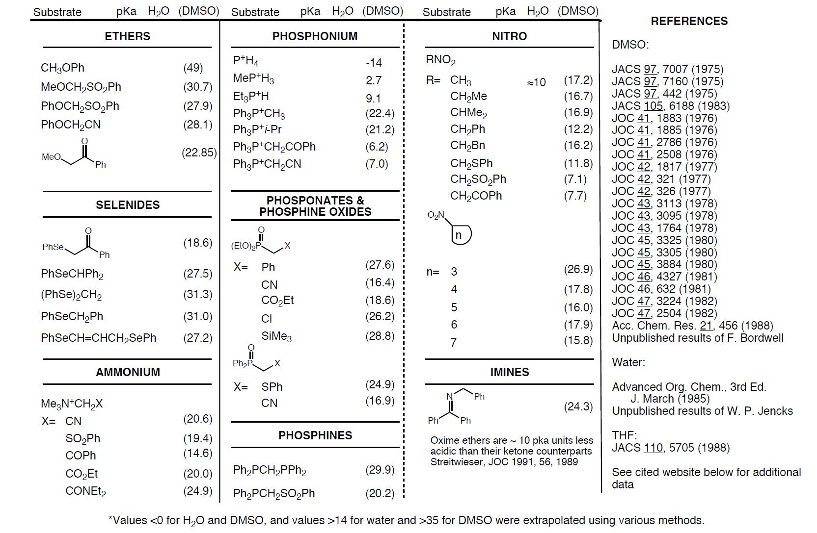 本文推荐哈佛大学 David Evans制作的化合物的pKa表, 包括以下化合物的pKa。