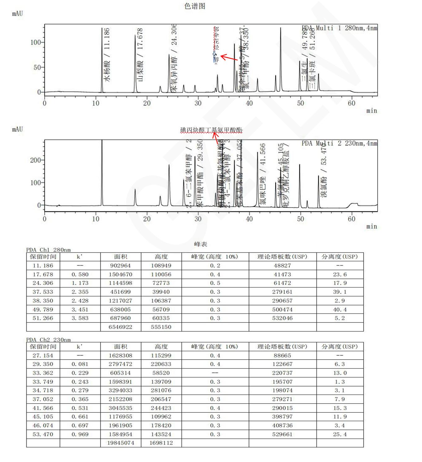 检测波长:280 nm;230 nm