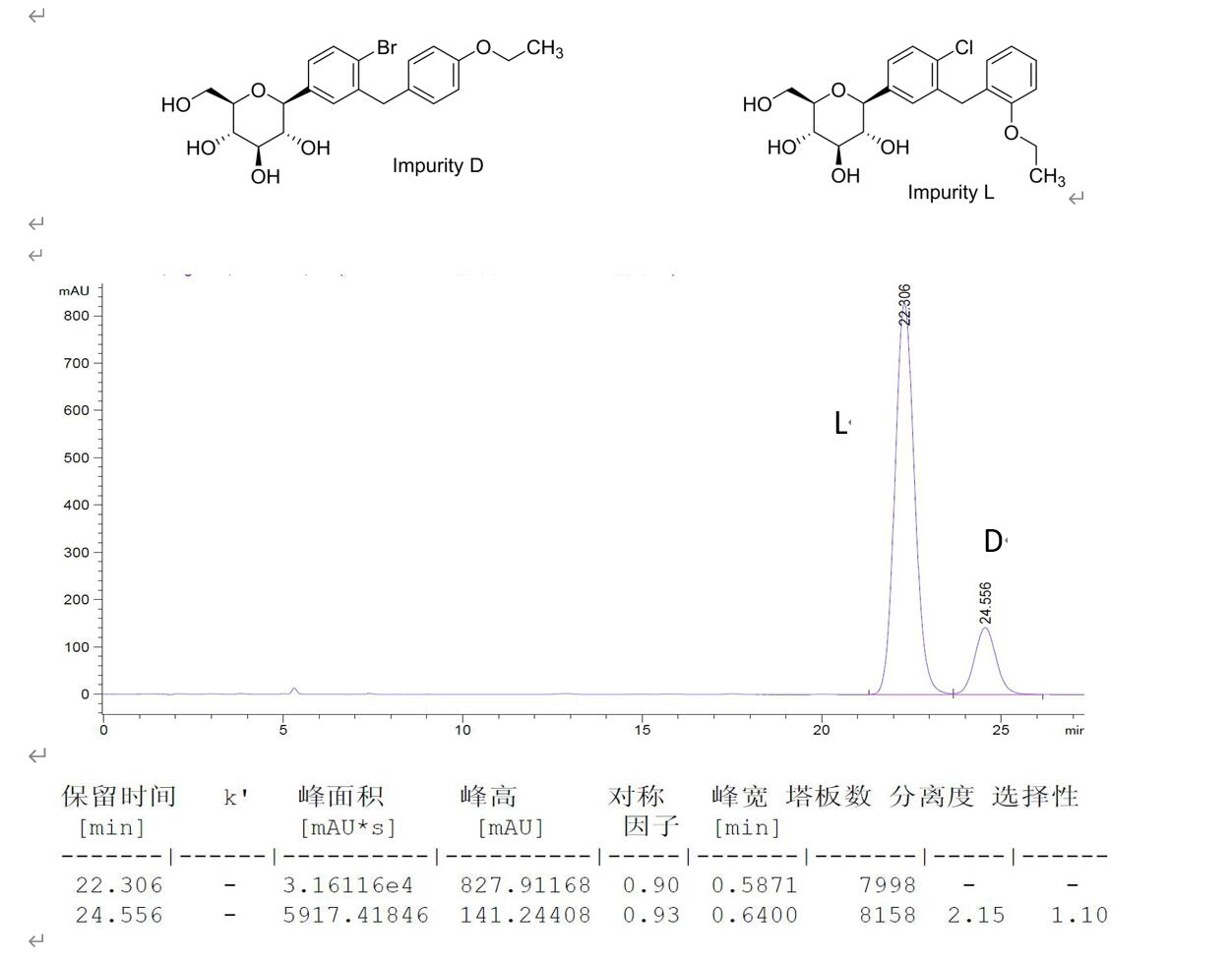 菲罗门色谱柱分离达格列净杂质D和L