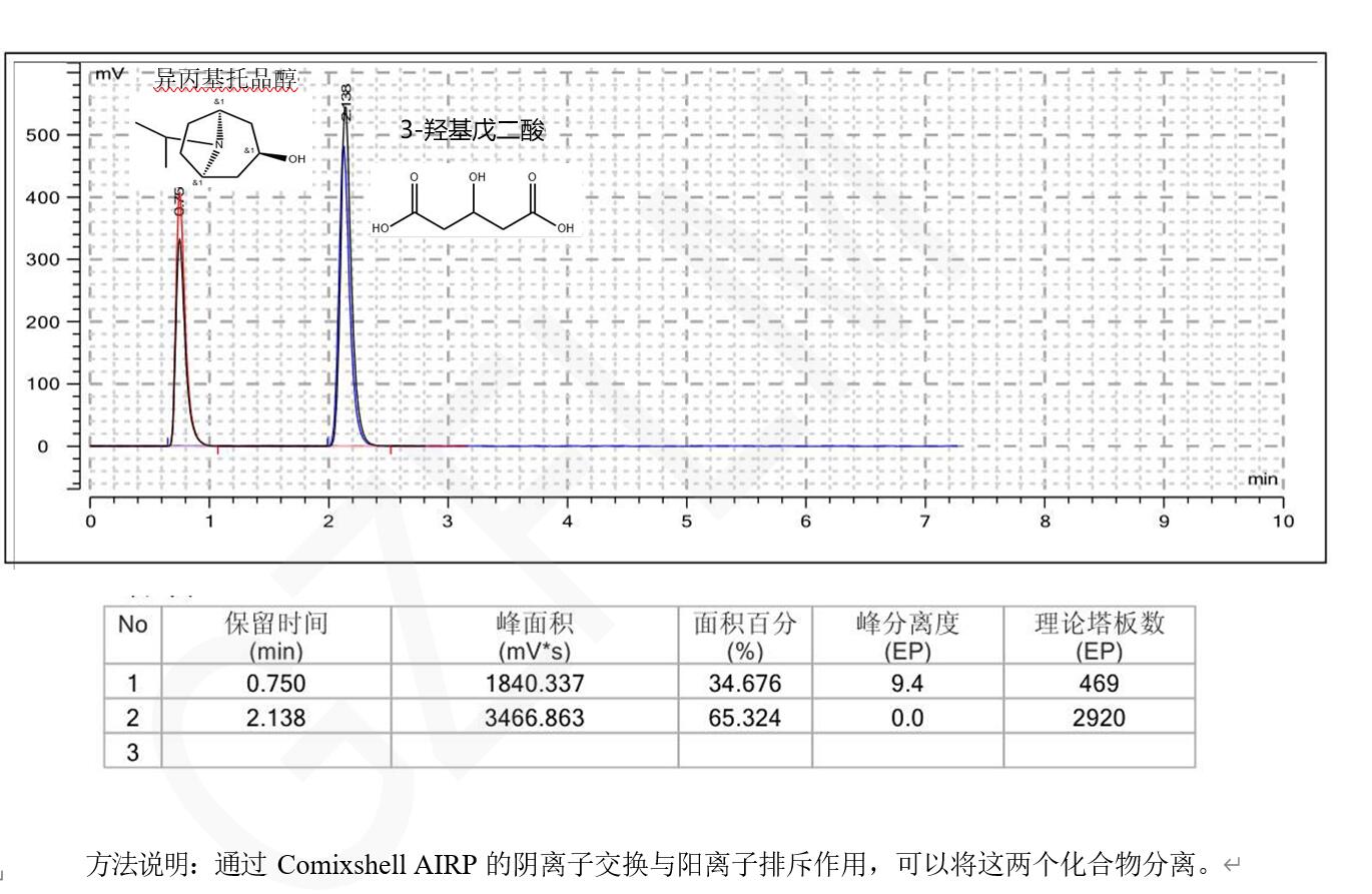 HPLC液相柱Comixshell AIRP 混合模式分离 3-羟基戊二酸与异丙基托品醇