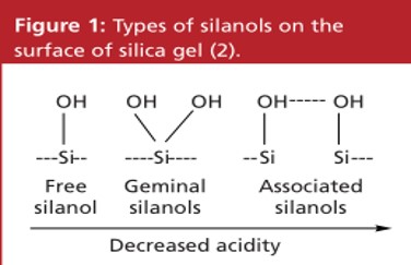 残余的硅羟基存在于所有的硅胶键合相的表面。由于是弱酸的特性,这些硅羟基会同某些分析物相互作用,尤其是同一些碱性化合物。因为硅羟基的Pka值大约是在4.5左右。
