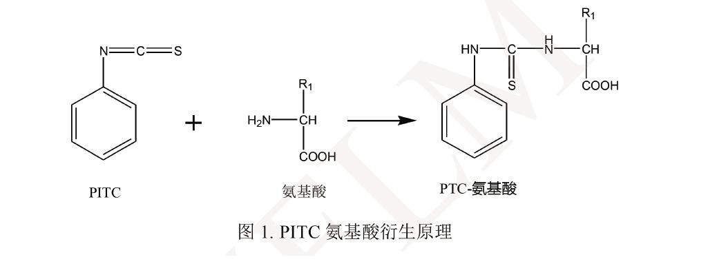 这种分析氨基酸的方法基于柱前衍生步骤,衍生化反应是在碱性条件下完成的,采用异硫氰酸苯酯和游离氨基酸反应生成的 PTC- 氨基酸衍生物可于 UV 254 nm 处被检测到。