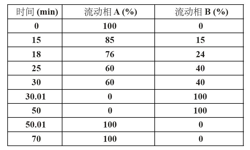 接着可用用户自己选择的流动相冲洗色谱柱。流速由0.1mL/min 逐渐升至所需的操作条件,直至基线稳定为止。