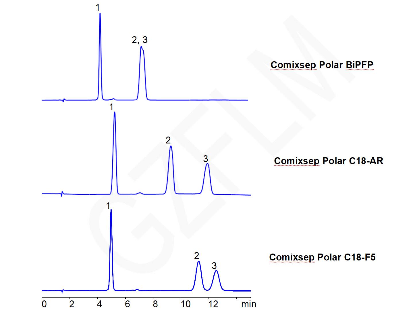 色谱柱: Comixsep Polar BiPFP, C18-AR, C18-F5