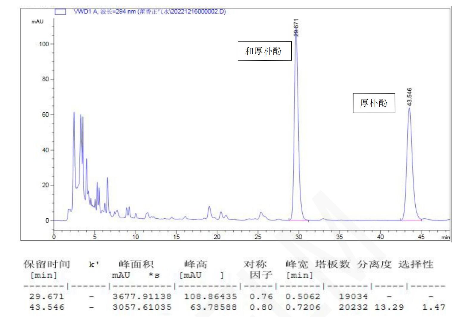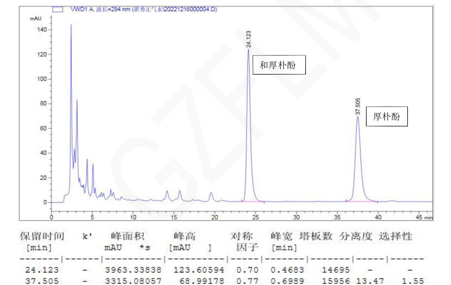 【厚朴测定】 理论塔板数按厚朴酚峰计算应不低于 5000