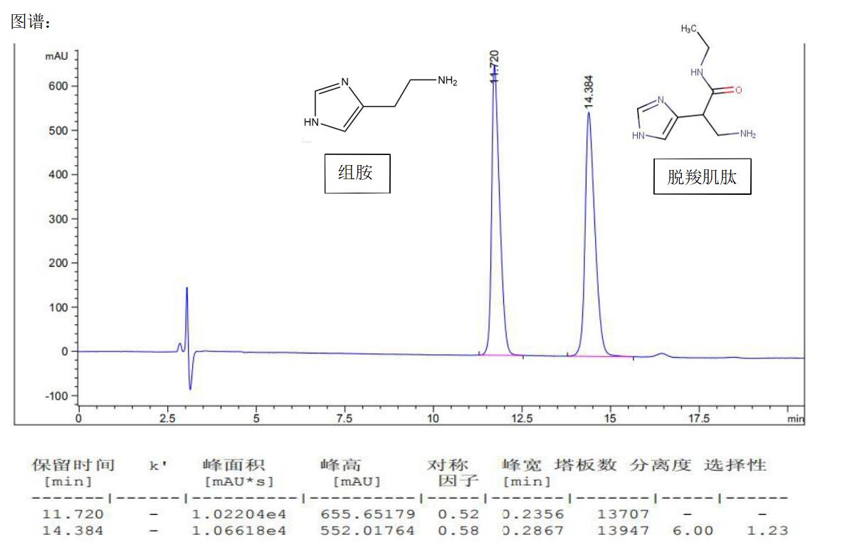 脱羧肌肽与组胺的HPLC色谱分析,SuperLu SCX 分离脱羧肌肽与组胺