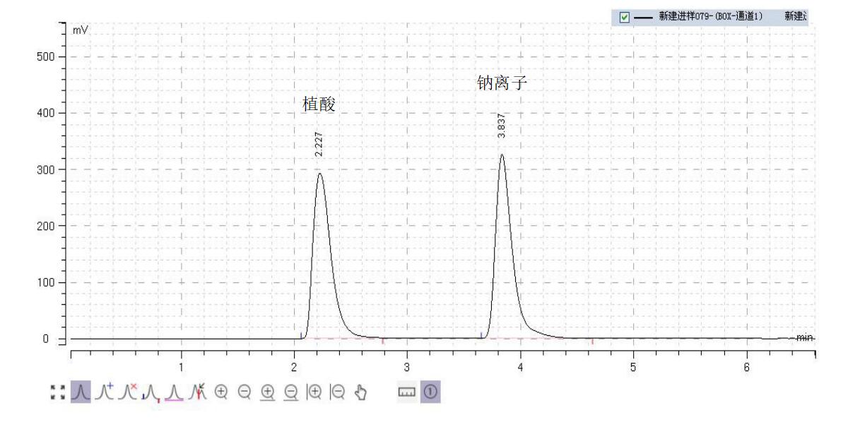 方法说明:液相方法使用 Comixsil HCS 检测植酸钠,调整有机相比例、缓冲盐 pH 可以调整保留时间.
