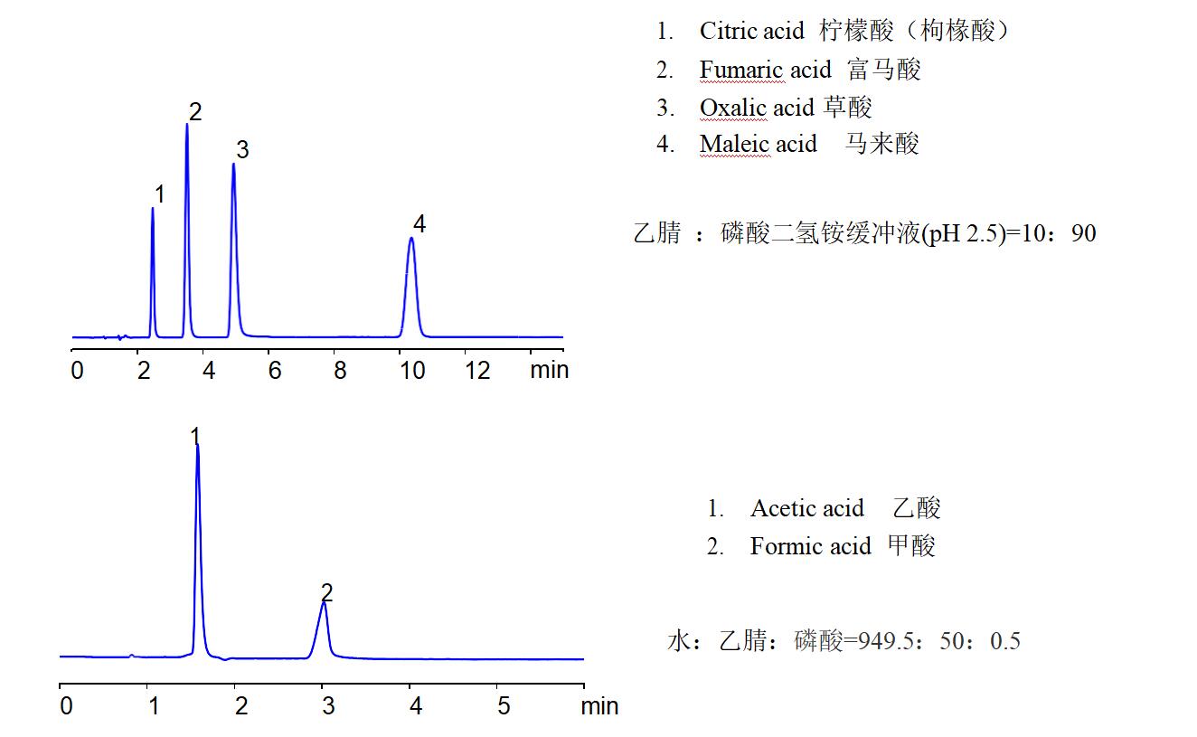 Comixsil HAX 分析草酸、柠檬酸、马来酸、富马酸、甲酸及乙酸等一元,二元, 三元有机酸
