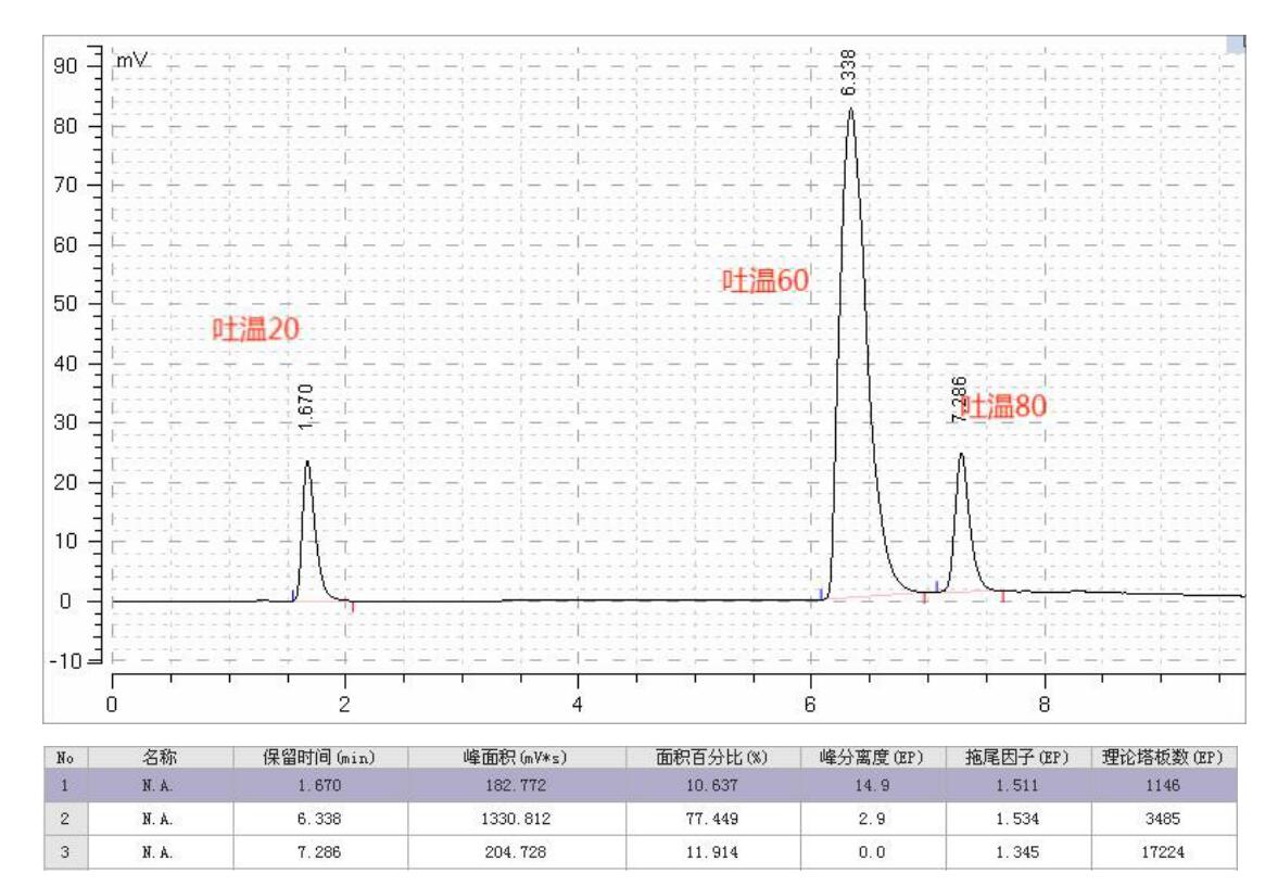 本方法同样可分析吐温 40,预计出峰在吐温 20 与吐温 60 之间。