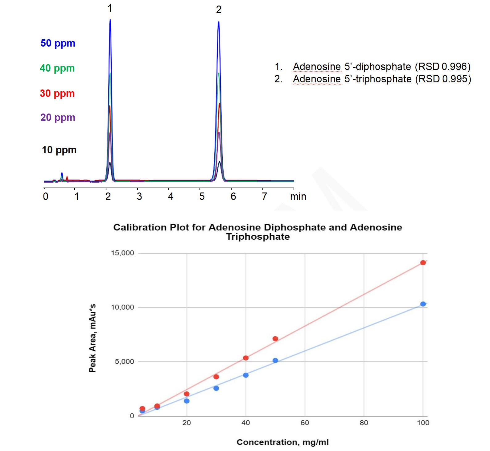 1.Adenosine 5’-diphosphate (RSD 0.996) 2.Adenosine 5’-triphosphate (RSD 0.995)