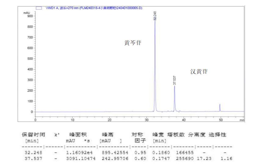 小柴胡颗粒中黄芩提取物的检测主要包括有效成分含量测定和质量控制指标的考察两个方面。