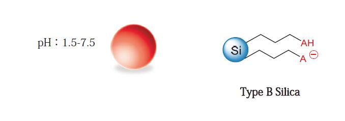 Comixsil HCS 短烷基链中嵌入可电离酸性基团,可提供阴离子排阻/阳离子交换/强氢键/ HILIC作用,可用于大极性碱性化合物和糖类、氨基酸的分析。 pH:1.5-7.5
