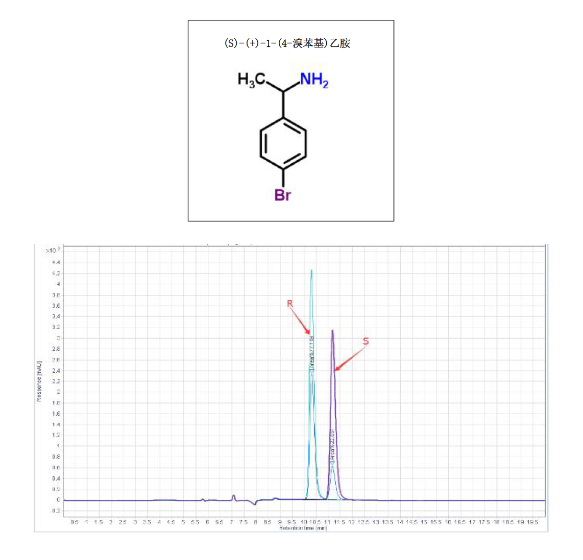 App ID: FLM-B250010 R,S(+)-1-(4-溴苯基)乙胺的手性分析 色谱柱:Chiral MJ(2) 250 × 4.6 mm,5 μm 货号:FMG-AC5-B03-NFC 流速:0.5 mL/min 波长:230 nm 柱温:25 ℃ 进样量:1 uL 样品浓度:N/A 流动相:咨询销售 色谱图: