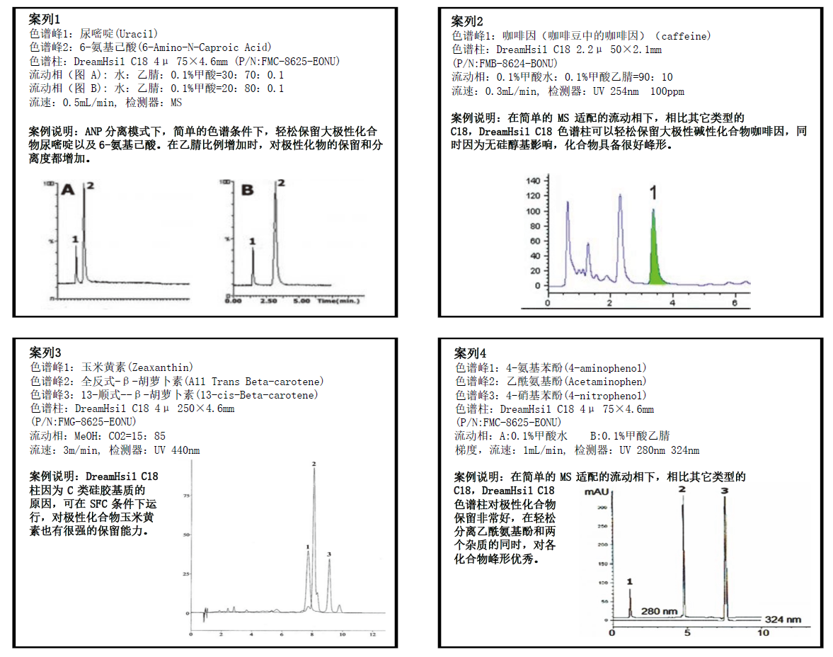 DreamHsil C18可以作为实验室的强有力工具因为它相比B 类的 C18 更稳定更耐用。它归属于USP L1 的分类??梢杂糜谌〈切┰谄渌嘈虲18 上,方法不稳定,含离子对试剂方法的应用。