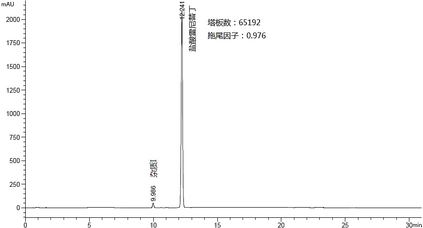 流动相:A:磷酸盐缓冲液(取磷酸6.8ml置1900ml水中,加入50%氢氧化钠溶液8.6ml,加水至2000ml,用磷酸或50%氢氧化钠溶液调节pH值至7.1±0.05)-乙腈(98:2)