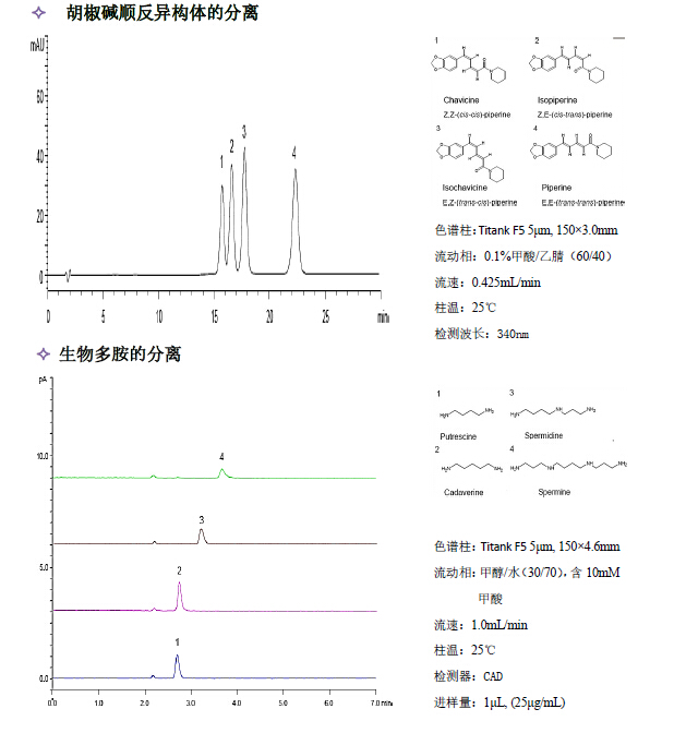 上图显示,对易于引起吸附、拖尾及易产生再现性问题的碱性化合物和配位化合物,Titank 系列能获得稳定的重现性。