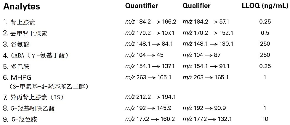 大鼠脑组织中神经递质及其代谢物的 LC-MS-MS 分析