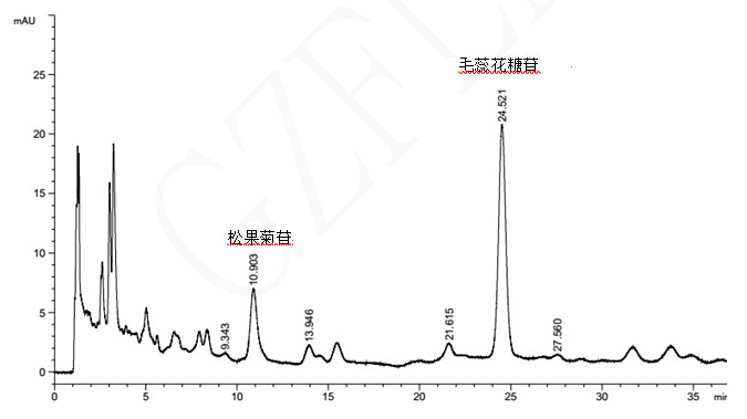 注:药典规定松果菊苷理论塔板数应不低于3000,本结果松果菊苷理论塔板数为:3825
