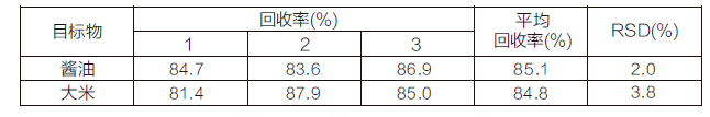 1、4.0 μg/kg 食品基质中赭曲霉毒素的添加回收结果 表 1 4.0 μg/kg 食品基质中赭曲霉毒素的添加回收结果