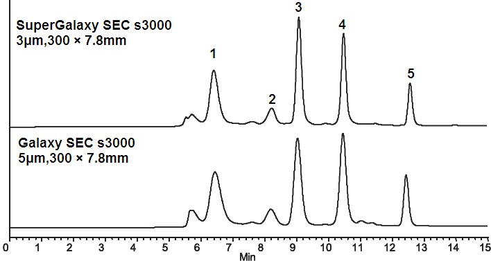 色谱柱规格:3μm vs. 5μm, 300 × 7.8mm