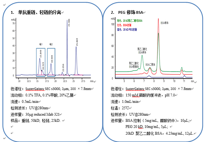 SuperGalaxy系列体积排阻色谱柱采用单分散、球形、表面键合了一层纳米厚度中性亲水薄膜的3μm硅胶作为填料。独有的表面键合技术保证了填料表面键合的最大化,使其具有极高的化学稳定性和最小的非特异性吸附。