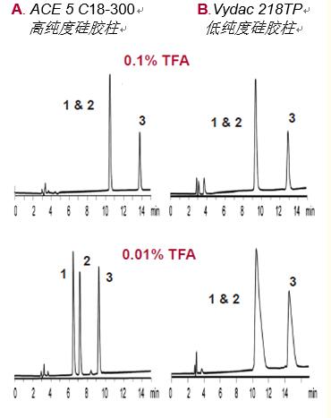 但采用高纯度硅胶柱时,可加入低浓度TFA(图17A——0.01%