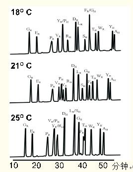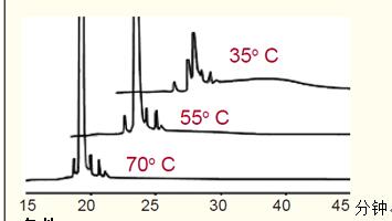 温度会显著影响肽图谱中多肽的分离,如图24所示。