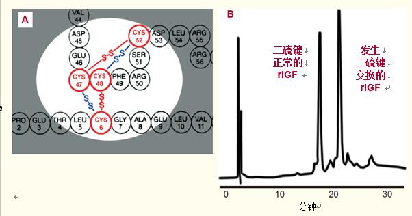 发生了二硫键交换的IGF比天然IGF出峰晚(图43),表明了疏水脚的增大。